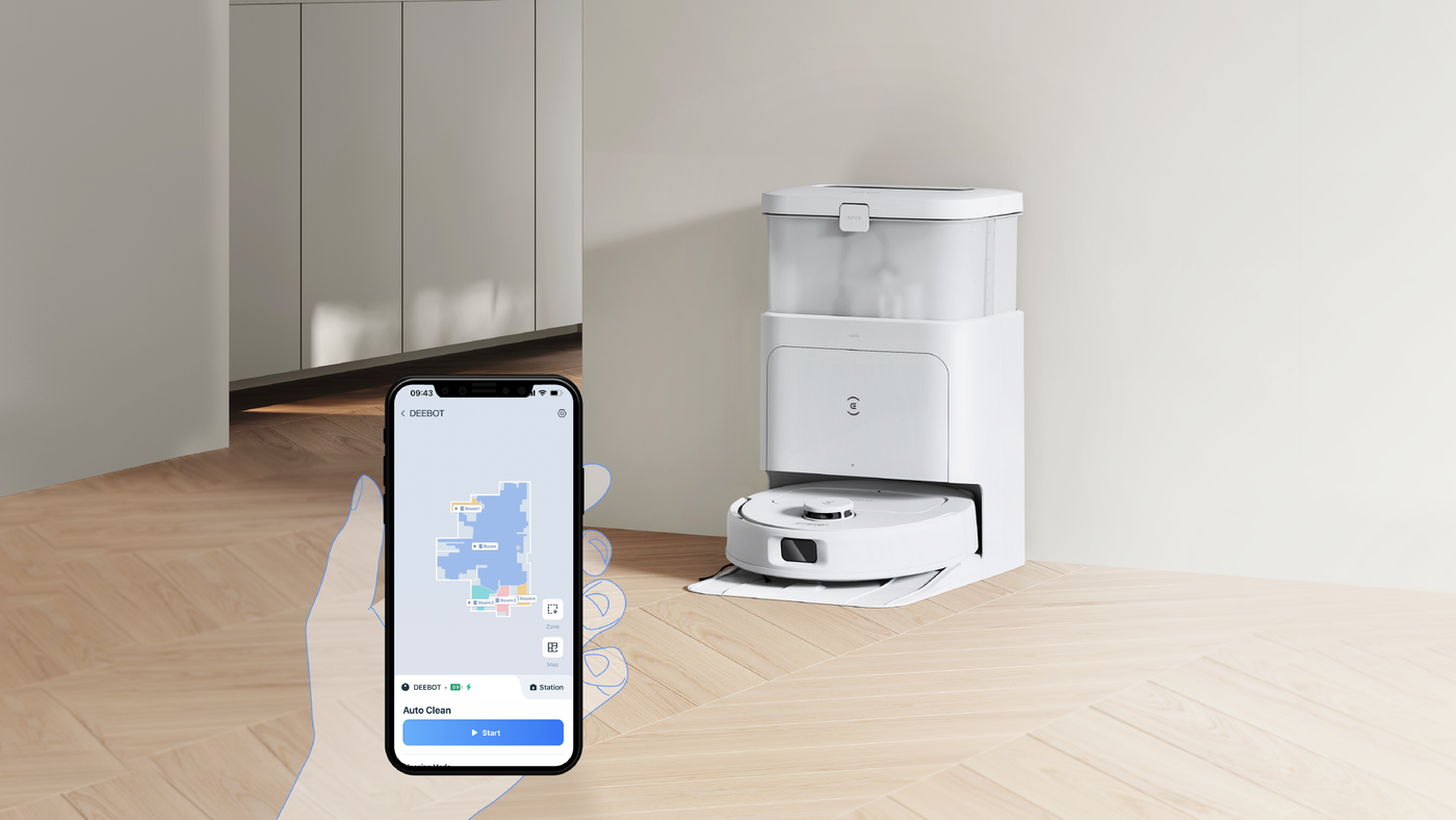 The DEEBOT N30 PRO OMNI offers seamless mobile control and customisation, enabling users to effortlessly initiate Whole House Cleaning or resume programs with simple commands.