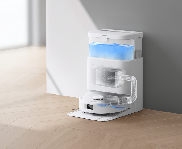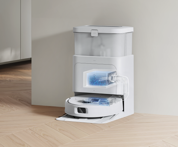 The sleek and minimalist design of the Compact OMNI Station adds convenience with professional mop capabilities and smart dust collection.