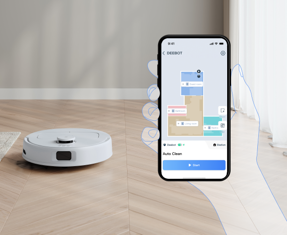 The DEEBOT N30 PRO OMNI offers seamless mobile control and customisation, enabling users to effortlessly initiate Whole House Cleaning or resume programs with simple commands.