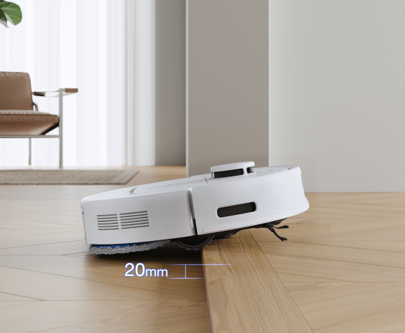 Powered by high-traction drive wheels, ensures exceptional manoeuvrability, allowing it to conquer obstacles with heights up to 20mm on both dry and wet surfaces, providing users with versatile cleaning capabilities for various home environments.
