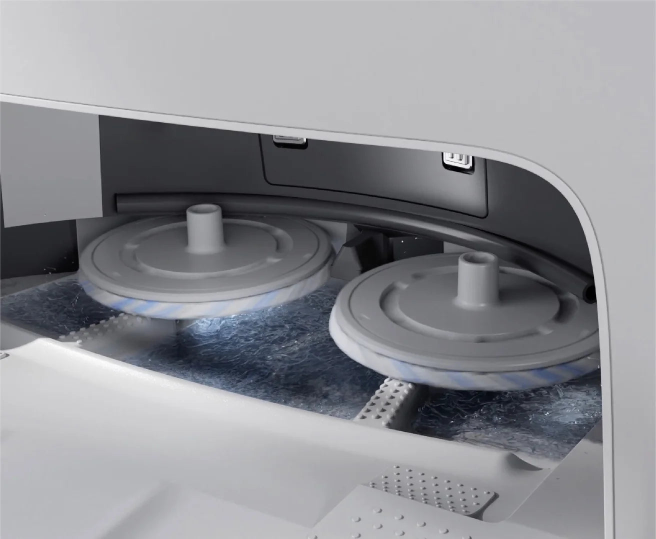 DEEBOT T10 TURBO's mopping pad provides a thorough auto-cleaning solution. The water tank supplies clean water intermittently for pad washing and spin-drying to minimize water waste and achieve a better cleaning performance.