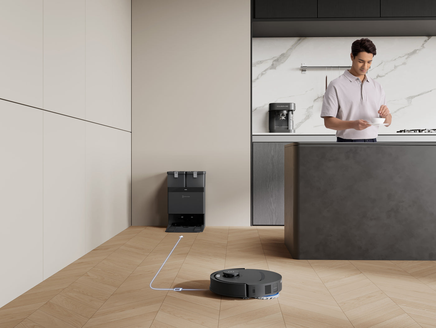 The upgraded all-in-one OMNI Station integrates Auto-Empty,45°C Hot Air Drying, 75℃ Hot Water Mop Washing, Auto Cleaning Solution Dispensing, Automatic Self-Cleaning, and Intelligent Off-Peak Charging, ensuring a truly hands-free experience.