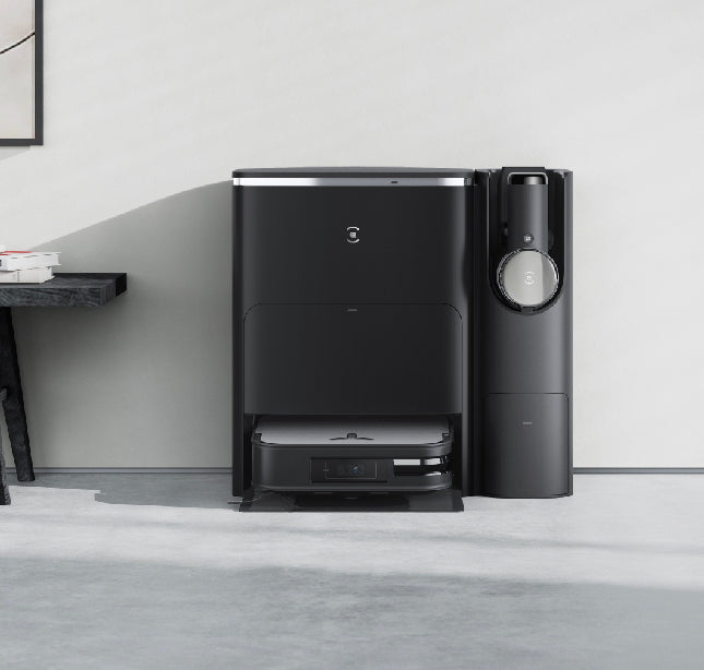 The X2 COMBO’s new OMNI Station houses ECOVACS' powerful handheld vacuum and its hassle-free DEEBOT vacuum cleaner.