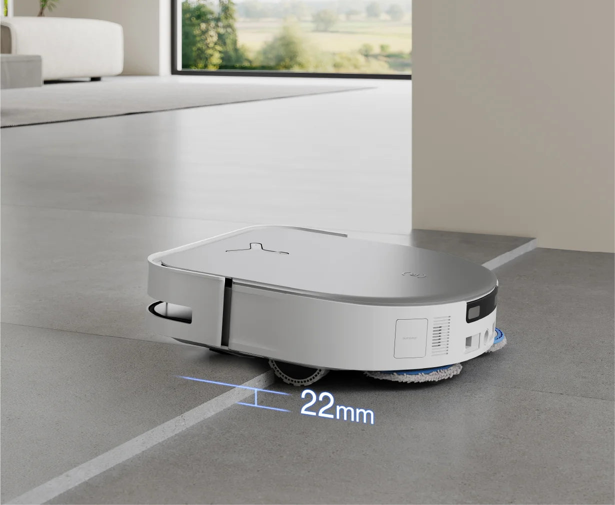 DEEBOT X5 PRO OMNI effortlessly overcomes obstacles up to 22mm in height, ensuring seamless navigation across thresholds and sliding door slides, providing uninterrupted cleaning sessions and eliminating concerns about barrier crossings.