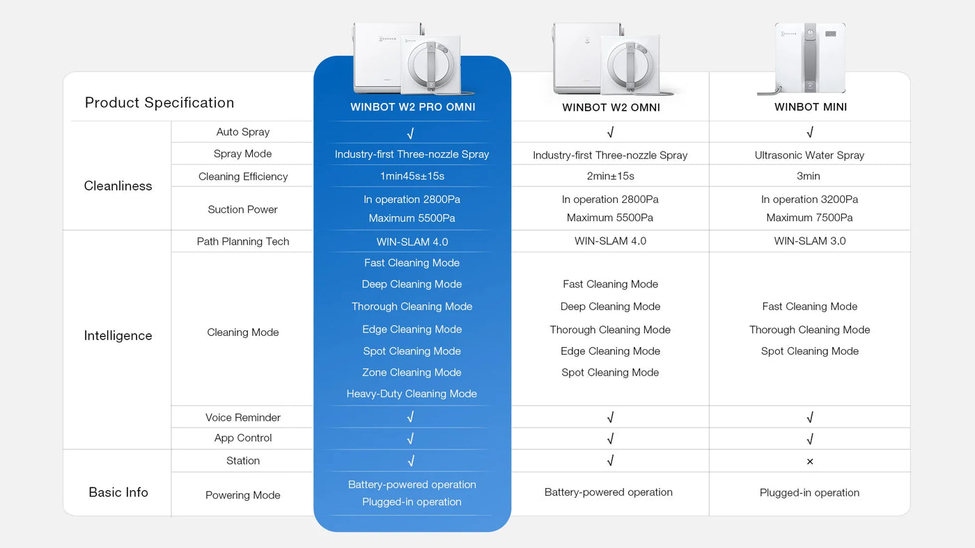 - WINBOT W2 PRO OMN now can simultaneously be plugged and be operated (W2 OMNI coudn't operate when charging).